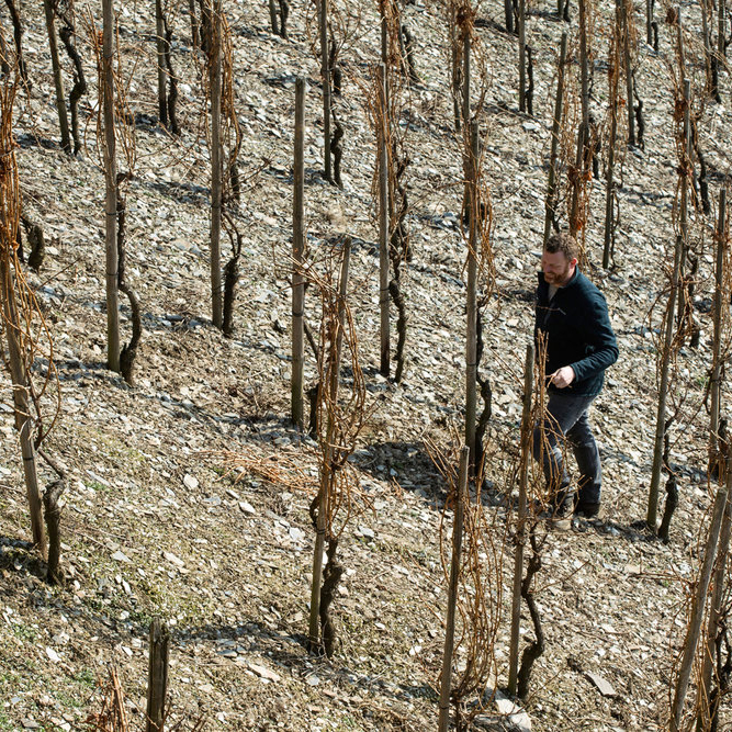 From the quaffable and dry ‘Tres Naris’ and the pristine and steely ‘Purist’, to the traditional medium-dry ‘Generations’, the stunning quality and great purity of the Pauly range are enhanced by Axel’s approach in the winery. Indigenous yeasts are used until they begin to struggle towards the end of fermentation. At this stage, Axel introduces cultured yeasts to preserve the expression of the vineyard’s character in the wines. The fruit for his two single-vineyard Mosel Rieslings is sourced from the steep slope of the Niederberg-Helden top site. While the more delicate `Lieserer Niederberg-Helden` off-dry Kabinett is charming and lively, the dry ‘Helden’, whose name means ‘Heroes’, is sophisticated and elegant with wonderful concentration.