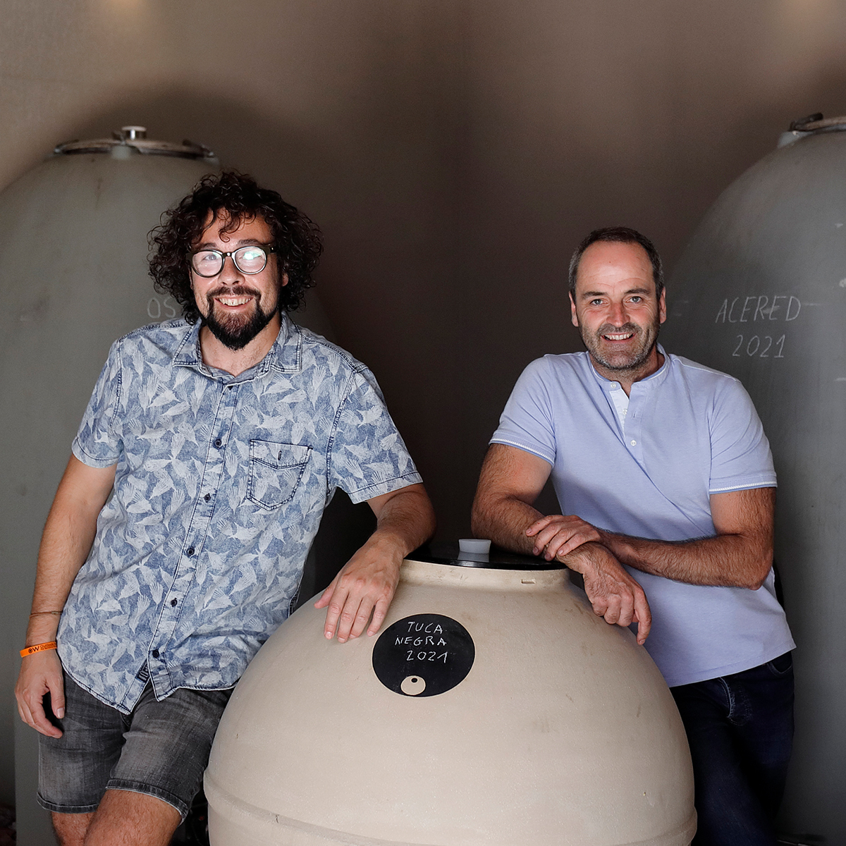 Cuevas de Arom’s fruit is harvested by hand before manual sorting in the cellar and foot treading. Wooden vats and concrete tanks are used for fermentation, which lasts about one month. Whole bunch is at the centre of Fernando’s winemaking philosophy, with the inclusion of stems, to produce a signature freshness and perfume in the wines. Fernando and Mario use only manual punch downs, producing delicate, fine-grained tannins. They select concrete, old wood and clay vessels for ageing to highlight the purity of Garnacha and to preserve the wines’ supple texture.