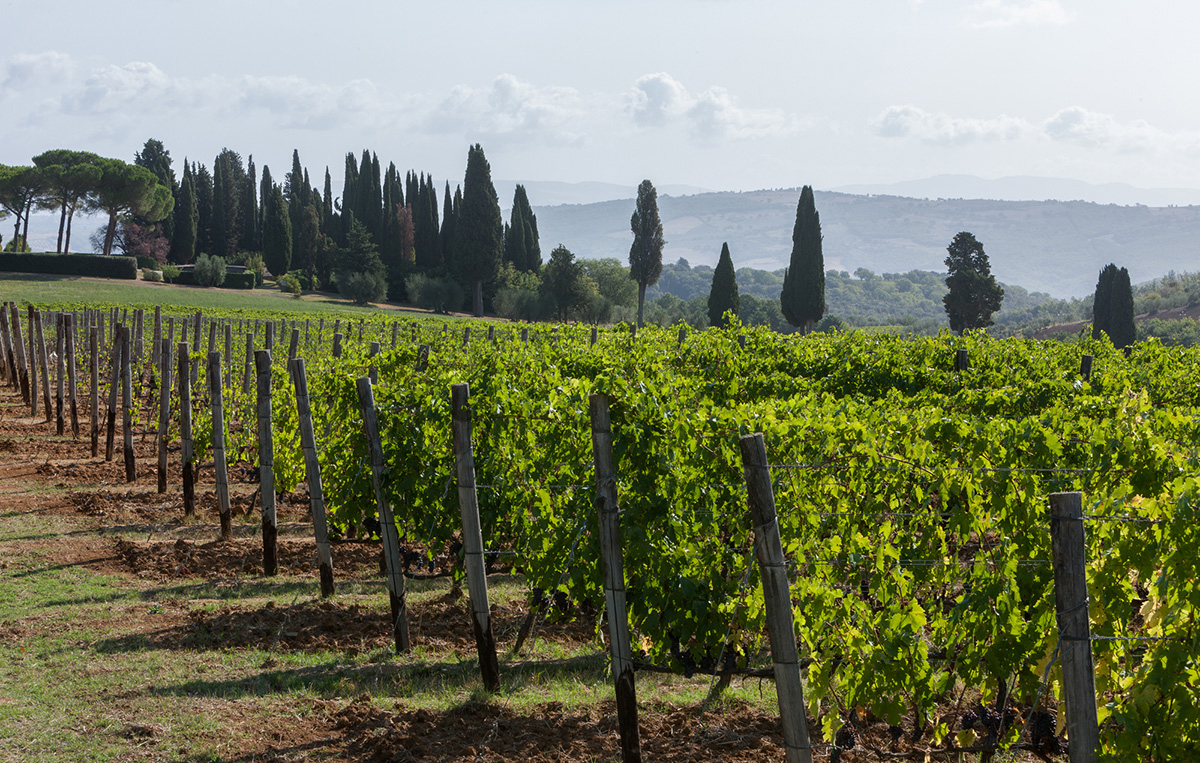 The 150-hectare property, which neighbours Costanti’s estate, comprises 32 hectares of vineyard split over five sites. Tenuta Greppo, at 500 metres above sea level, is where the historical winery and estate villa are situated and where the oldest plot, planted in 1936, is to be found. The other vineyard sites, Scarnacuoia, Pievecchia, I Pieri and Ribusuoli, are located respectively to the west, north, east and south-east of the town of Montalcino, all preserving a predominantly eastern exposition and high elevations. They are instrumental in preserving Biondi-Santi’s signature style, driven by elegance, fresh acidity and moderate alcohol. The oldest vineyards, aged over 25 years old, are the source of grapes for Biondi-Santi’s Riserva, while the 10 to 25-year-old vineyards are used for the Brunello di Montalcino and those younger than 10 years are used for the Rosso di Montalcino.
