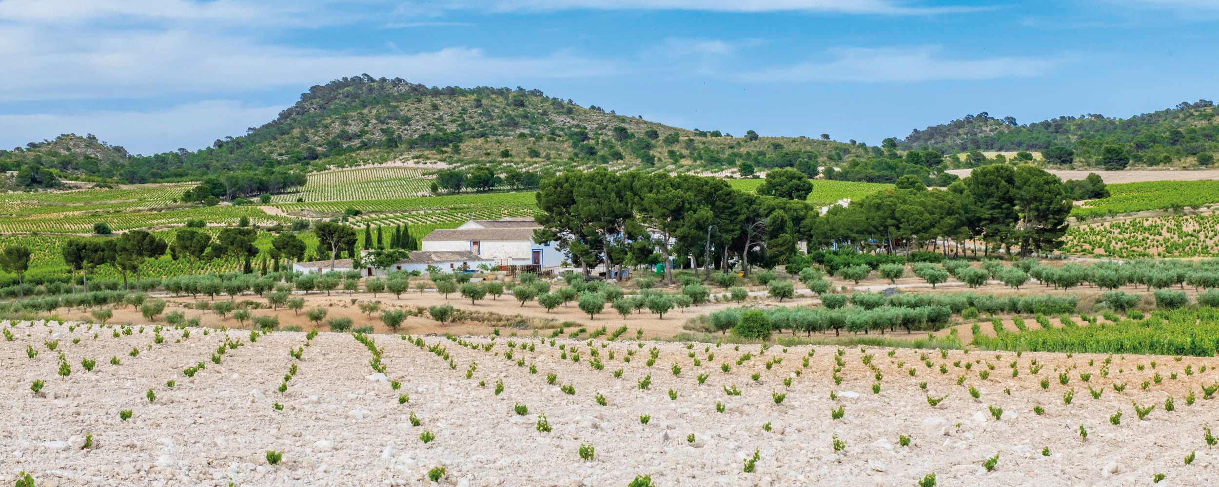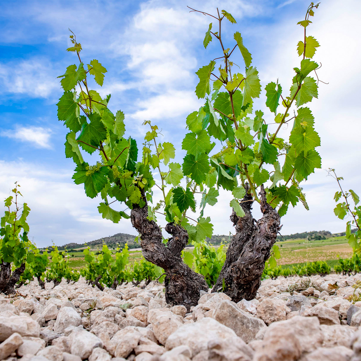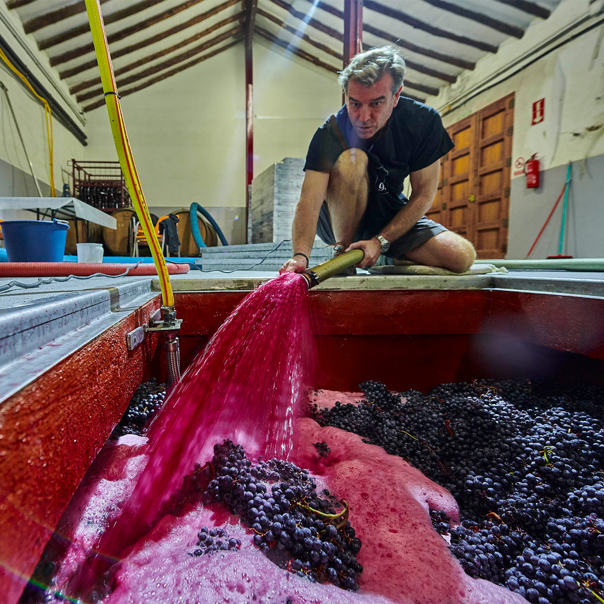 The estate is certified organic with 170 hectares under vine. Here, the soils are primarily calcareous and sandy, and certain plots have a high proportion of gravel. The Monastrell, Garnacha and Syrah bush vines are dry farmed and planted at very low density, resulting in yields of about three tonnes per hectare. Most of the vines are planted on north-facing slopes at around 700 metres above sea level. Conditions in Jumilla can be unforgiving, with hot, dry summers and very little rainfall. The northerly aspects provide some respite from the intense summer sunshine, and a high diurnal range ensures the grapes ripen slowly and retain freshness.