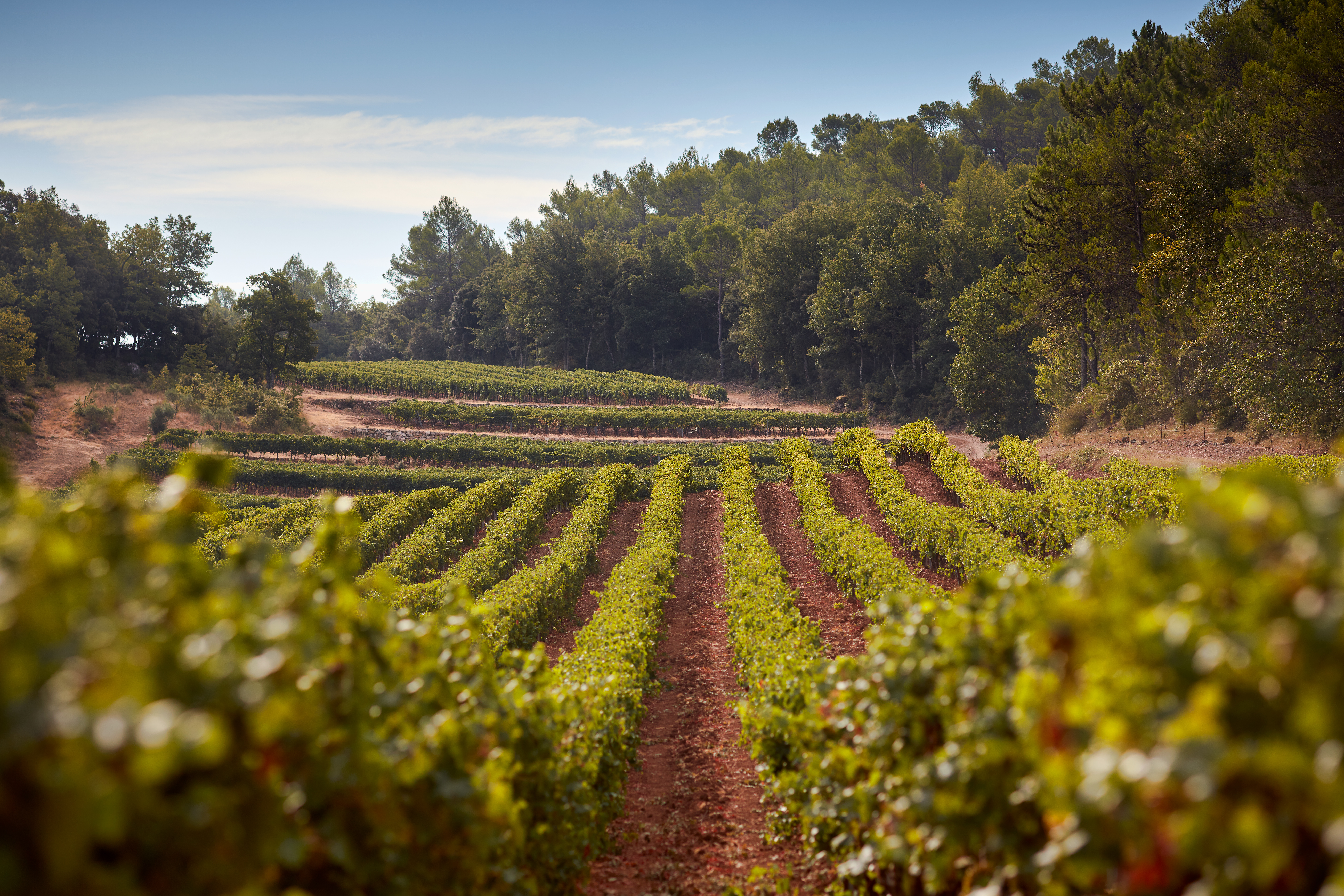 Château Miraval comprises 50 hectares of terraced vineyards, planted 350 metres above sea level, resulting in cool nights that moderate warm days and allow grapes to retain their delicate aromas and crisp acidity. The clay and chalk soils at Miraval are also crucial for quality, helping regulate water supply to the vines so they have water when they need it and drainage when they don’t. During harvest, the grapes are hand-picked in the cool temperatures of early morning, before being hand-sorted twice to ensure only the best grapes go into the final wine, which blends Grenache, Cinsault, Rolle (aka Vermentino) and Syrah.