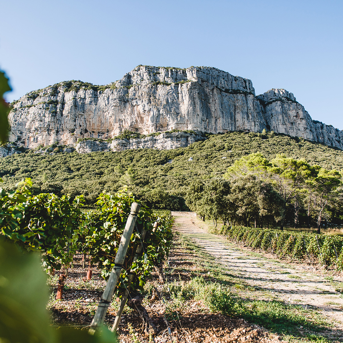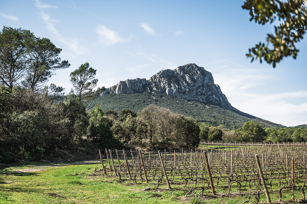 Since taking over, Jean’s children have introduced higher planting densities and sustainable practices in the vineyards of Domaine de l'Hortus. Viticulturist François uses cover crops and deep-rooting plants to break up the soil naturally, plus vegetal compost to boost soil quality. No pesticides or insecticides are required thanks to the moderate climate and rich biodiversity in the area. Limestone terraces, planted on the lower slopes of Mount Hortus, reflect the heat and allow Mourvèdre to ripen well. In contrast, the cooler, north-east facing, steep slopes of neighbouring Mount Pic produce scented Syrah and bright Grenache, while the alluvial soils of the valley floor suit the white varieties.
