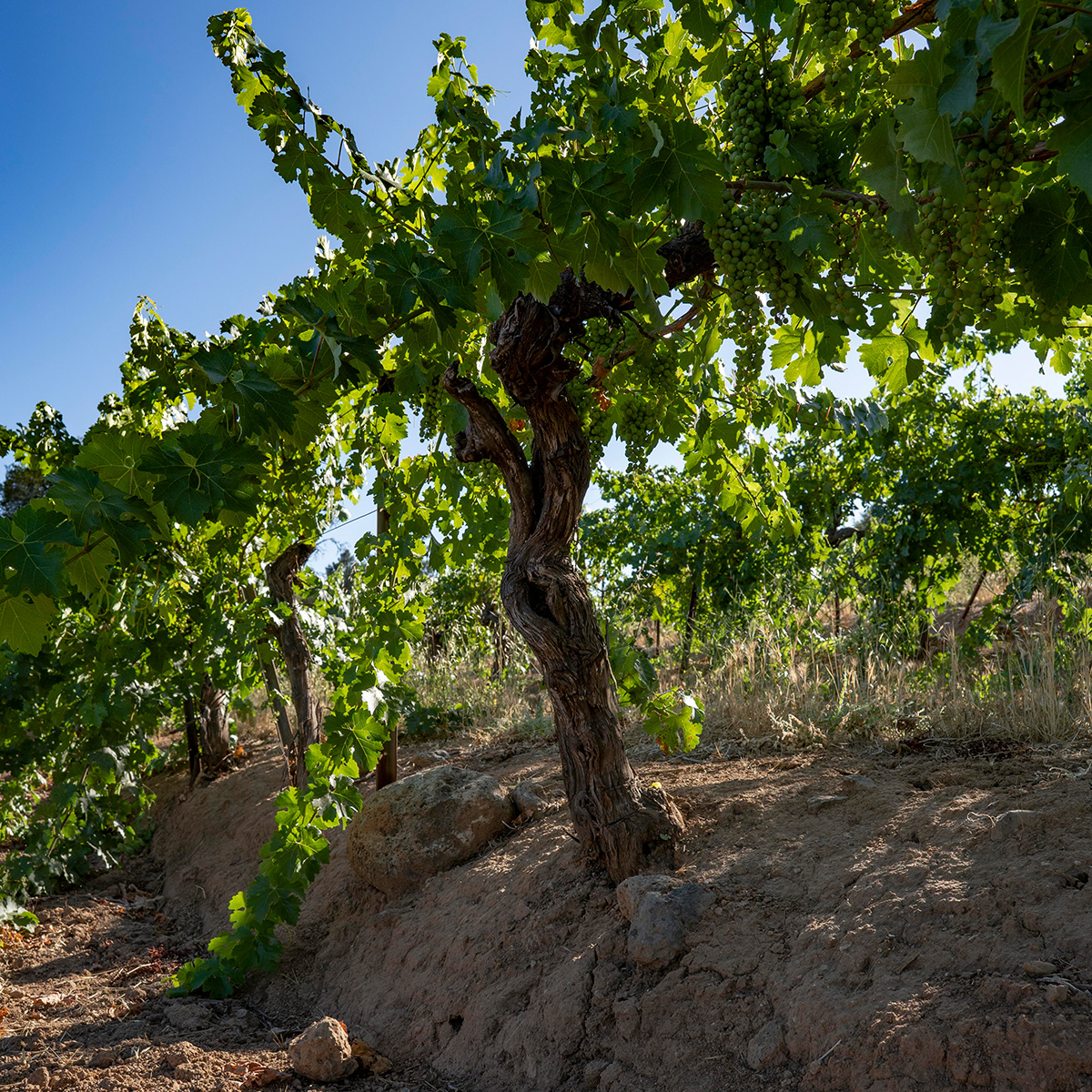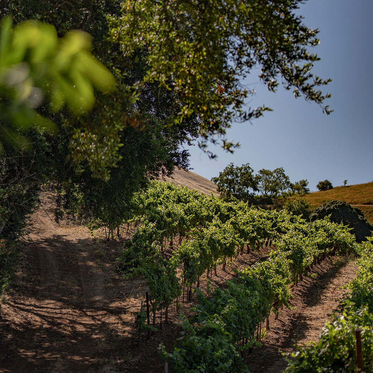 The ‘Myrna’ Chardonnay comes from the ‘Bald Mountain’ Vineyard, a site nestled into the second-highest peak in the Mayacamas mountains, at around 550 metres above sea level. Planted in 1972, the vines lie in a cool bowl at the bottom of the site and, unusually, are planted with heritage California clones and rootstock. They are dry farmed, which allows the vines to thrive in poor, fractured soils and results in a distinct saline character in the wine. This fruit is supplemented by a small parcel of thirty-year-old vines from ‘Thornton’ Vineyard, at the foot of Sonoma Mountain. This lends a precise acidity to the wine from the more ocean-influenced climate.