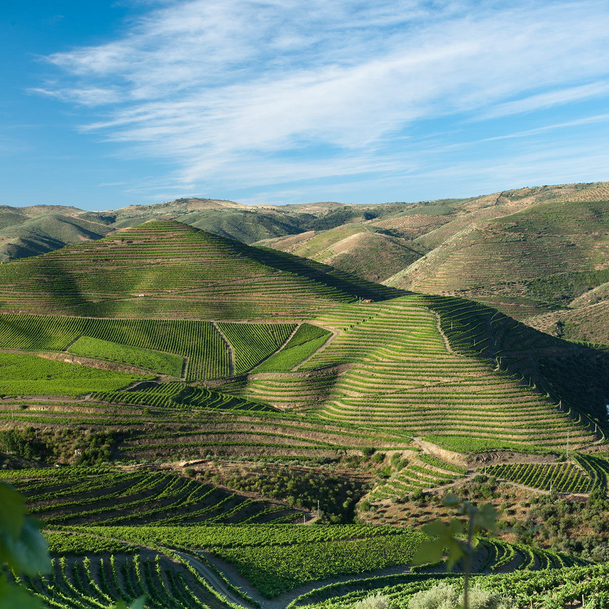 Today, Ferreira's flagship vineyard is the 27-hectare Quinta do Porto. Planted in 1771 and acquired by Dona Antónia in 1863, the vineyard is located on the north bank of the Douro, downstream from the village of Pinhão and facing Sandeman’s Quinta do Seixo on the south bank. The combination of this warmer mesoclimate, due to the south/south-west exposure of the terraced vineyards, and proximity to the river, creates Ports characterised by an exuberant ripeness and exceptional concentration, alongside excellent balance. Old-vine parcels, described by winemaker Luís Sottomayor as “over retirement age”, produce low yields of intensely flavoured grapes and form the backbone of many of the top Ports in the Ferreira range. The entire Quinta is dry farmed using sustainable practices and harvesting is carried out by hand.