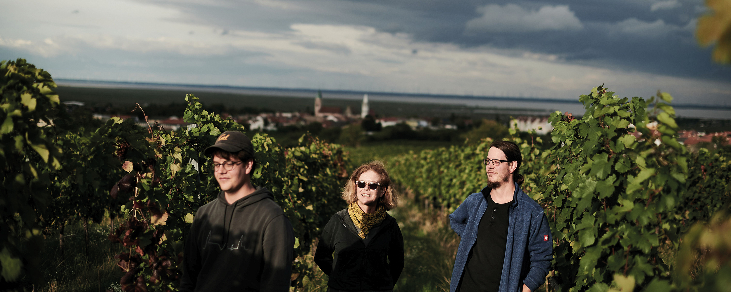 Heidi’s southeast-facing vineyards lie along the western banks of Lake Neusiedl, on sandy soils with clay, gravel, grey quartz and schist. The sites form a natural semi-amphitheatre that enjoys significantly more sunlight hours than most of Austria. Here, she sustainably cultivates classic Austrian varieties, including Zweigelt, Furmint, Blaufränkisch and St Laurent. In 2019, she was joined by her twin sons, Johannes and Georg, who honed their craft in Bordeaux, New Zealand, Tuscany, and Switzerland. Together, they continue to make wines that do justice to their family heritage, while keeping their sights set firmly on the future.