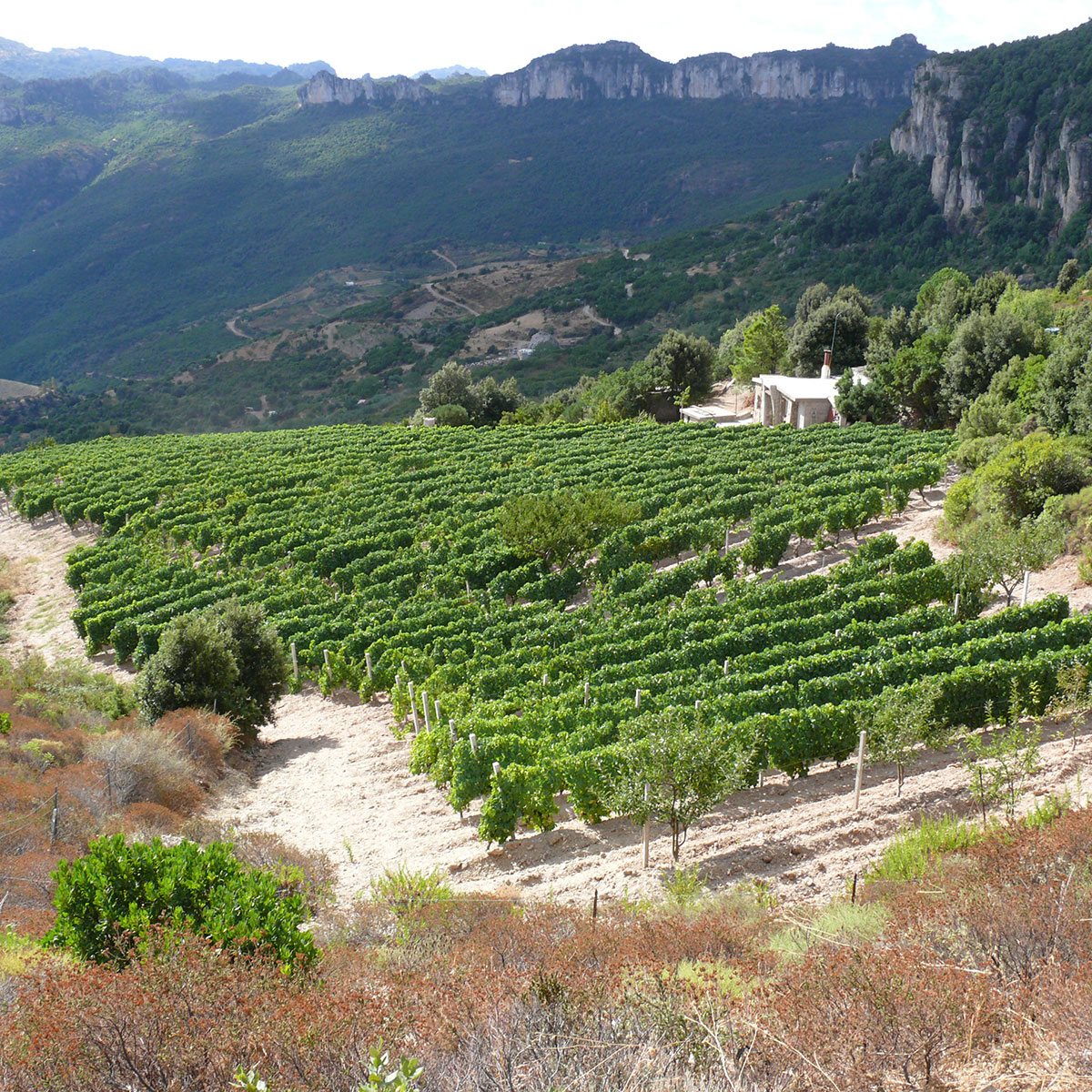Jerzu is a remote, untouched village that maintains many of its age-old traditions. This affinity to history and tradition is reflected in the village’s population, which boasts the world record ratio of centenarians to population: of the 3,200 inhabitants, four are over 100 years old. The cooperative’s 650 hectares of vineyards are in prime hillside areas stretching from the Gennargentu mountains, in the heart of the island, to the coast. The grapes grown here are renowned for their flavour intensity. The range of locations and micro-climatic conditions provides Biagio and Franco with multiple blending options along with opportunities to express the unique character of certain plots.