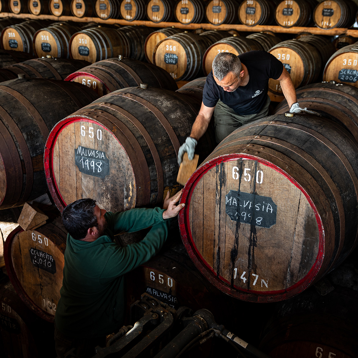 Justino’s modern winery, located in Cancela, Santa Cruz, was built in 1995. All their Madeiras are fermented in temperature-controlled, stainless-steel tanks to ensure pristine base wines. Fermentation is halted by adding 96% ABV neutral grape spirit at the optimum moment, which differs depending on the desired level of sweetness for each Madeira. All Justino’s wines, apart from the 5-Year-Old Fine Rich Reserve (which undergoes the ‘estufagem’ heating process), undergo the ‘canteiro’ ageing process, which involves being stored in barrels in the eaves of the Justino’s lodge, where they are gently heated naturally by the sun over extended periods.